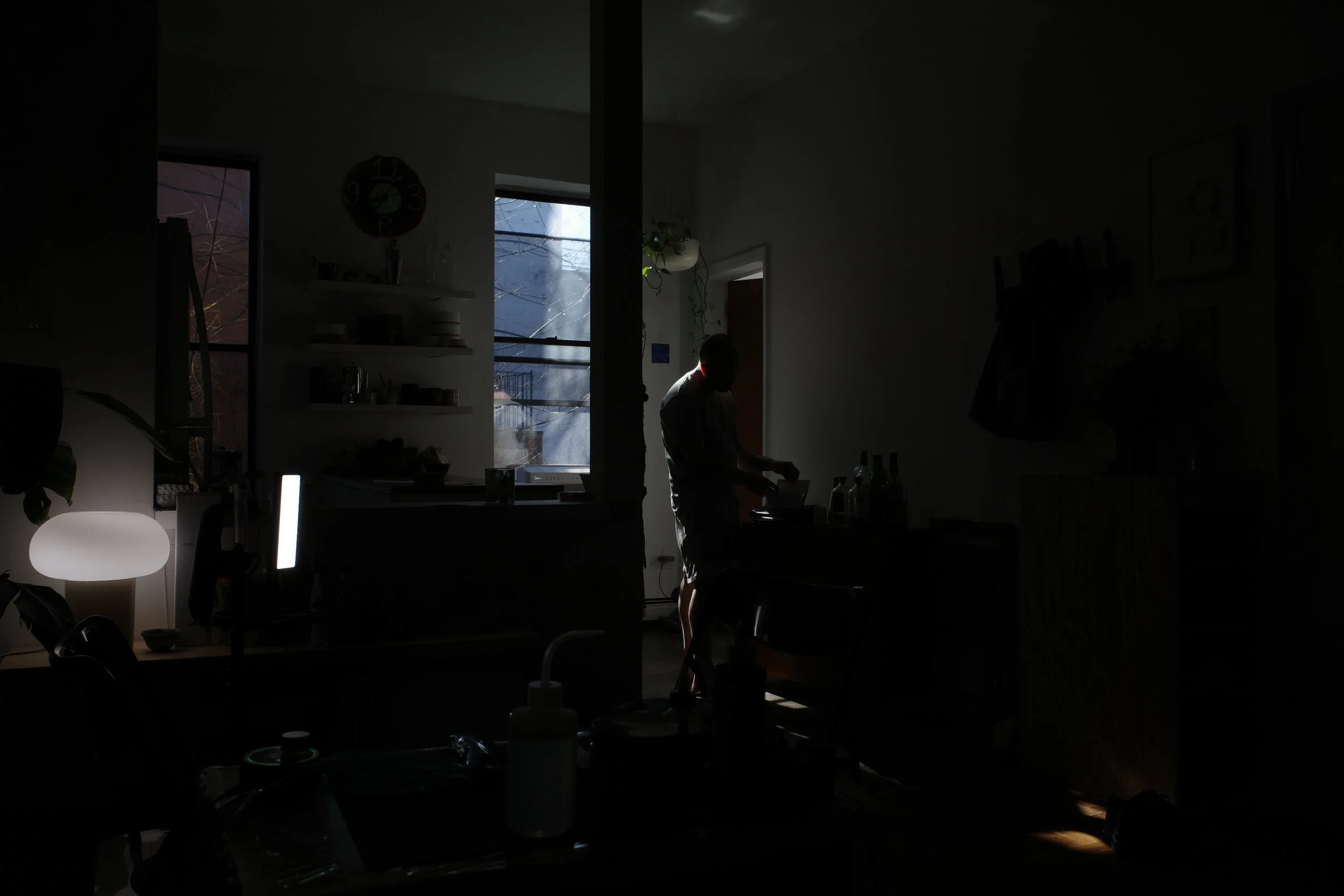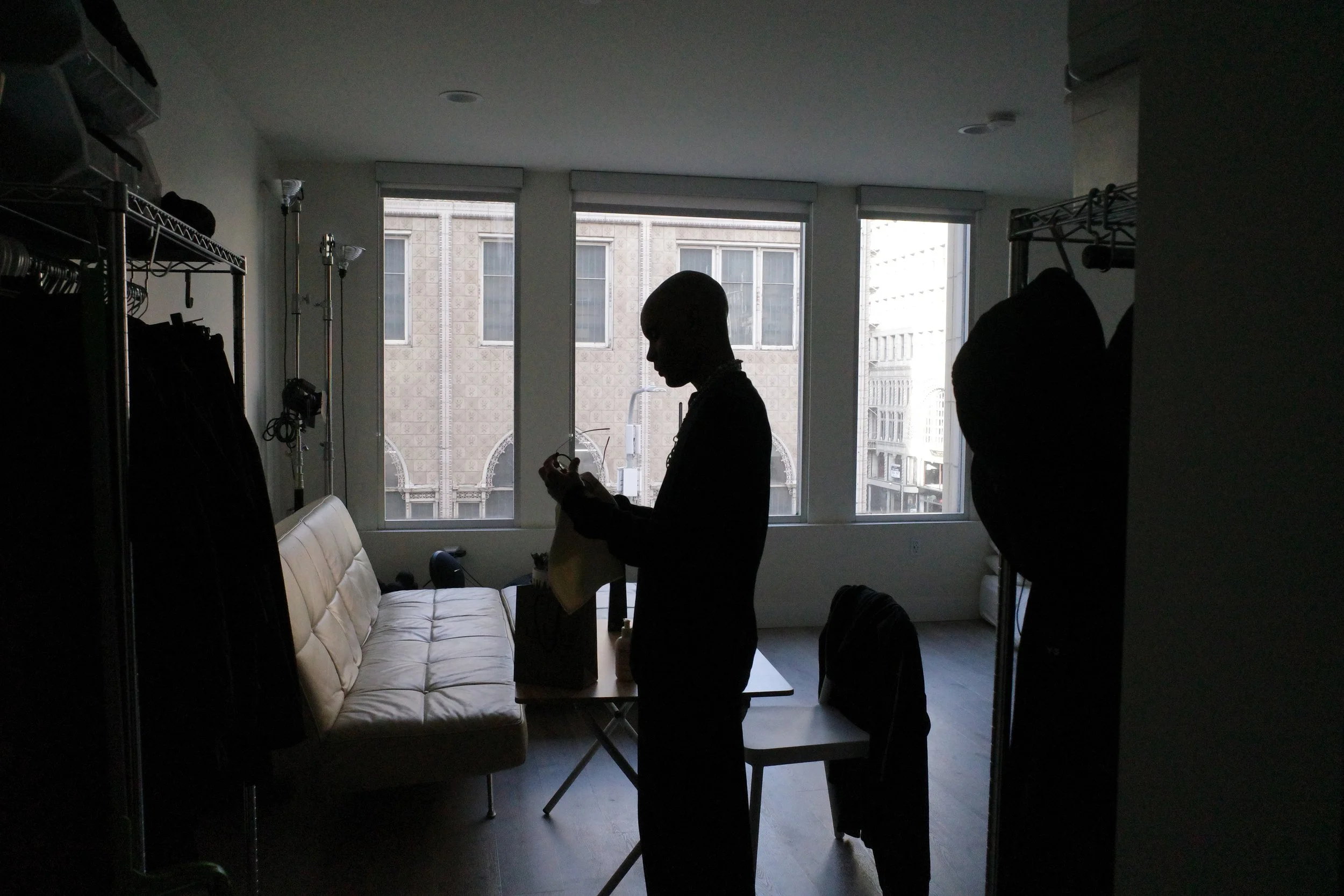 As we prepared to leave, the light from his living room window cast itself against us, and his silhouette was shrouded in the same black he wore when I first met him. I knew once I clicked the shutter release on my Ricoh, the lens captured the elegance and energy of who he is at his core: a jet-black beacon against a blinding white sea of uncertainty, guiding me through my evolution towards undeniability.
