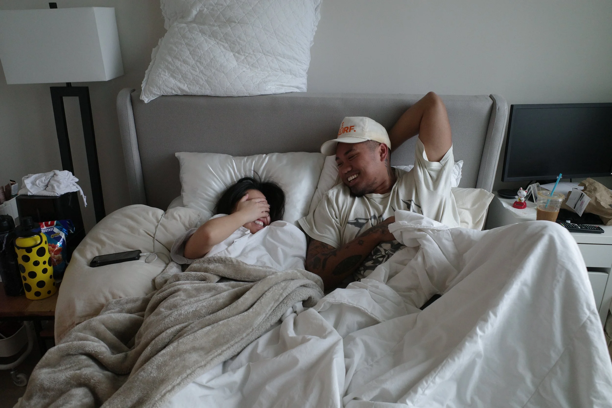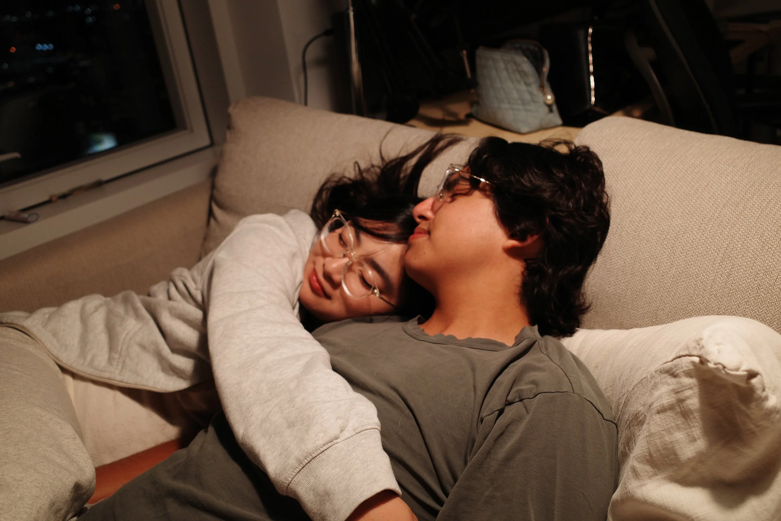 I wanted Derreck to pose next to Trine while she was napping to capture a typical Sunday morning nap between the two of them; while he did his best to keep her asleep, she covered her face immediately after realizing we were shooting their portrait.