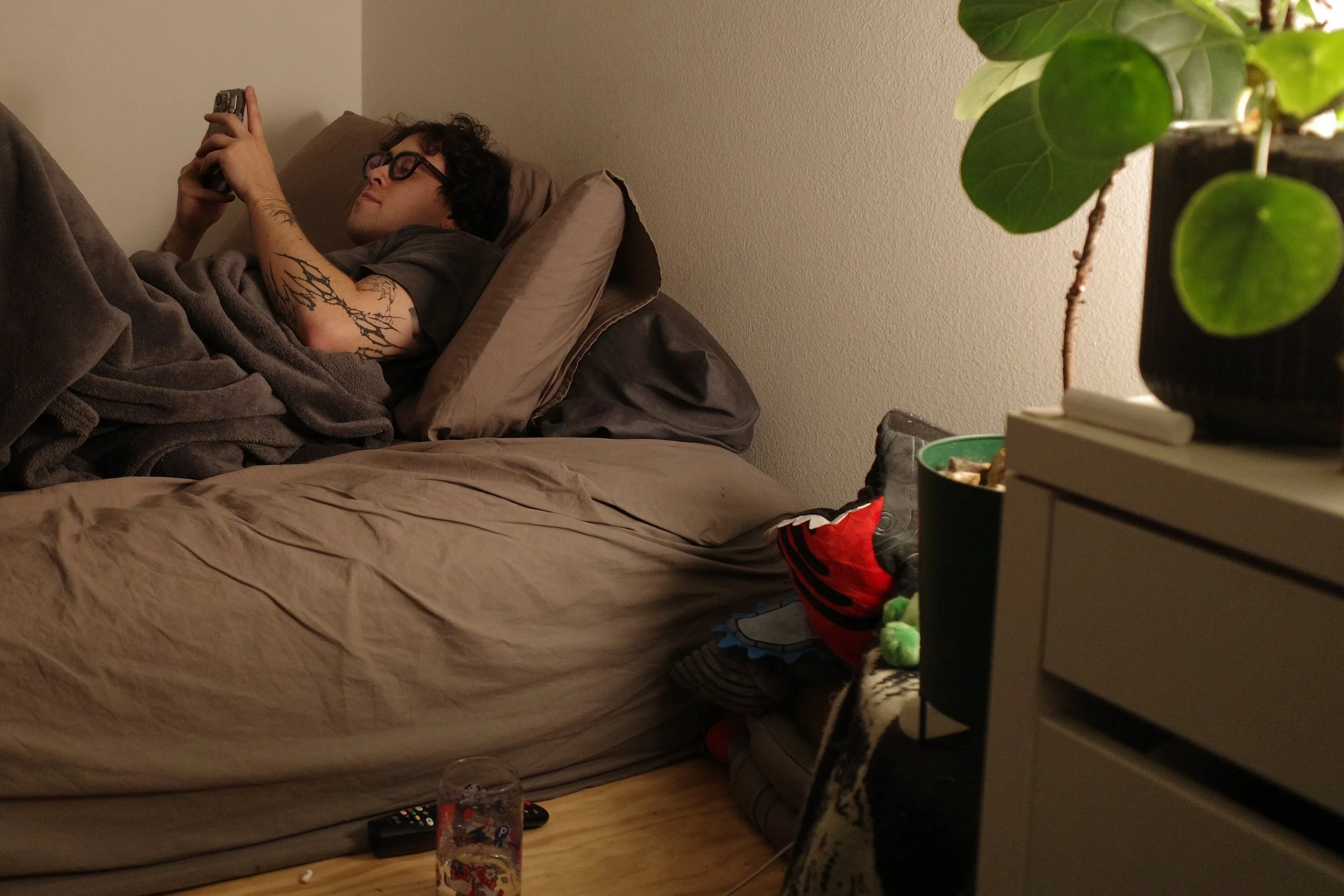 When I crash at Bobby’s, I rarely go into his actual bedroom; this setting made the most sense to capture him in, naturally intimate and real to his daily life. Even in a space I’d never been in before (his bedroom), I felt just at “home” as I did on his couch.
